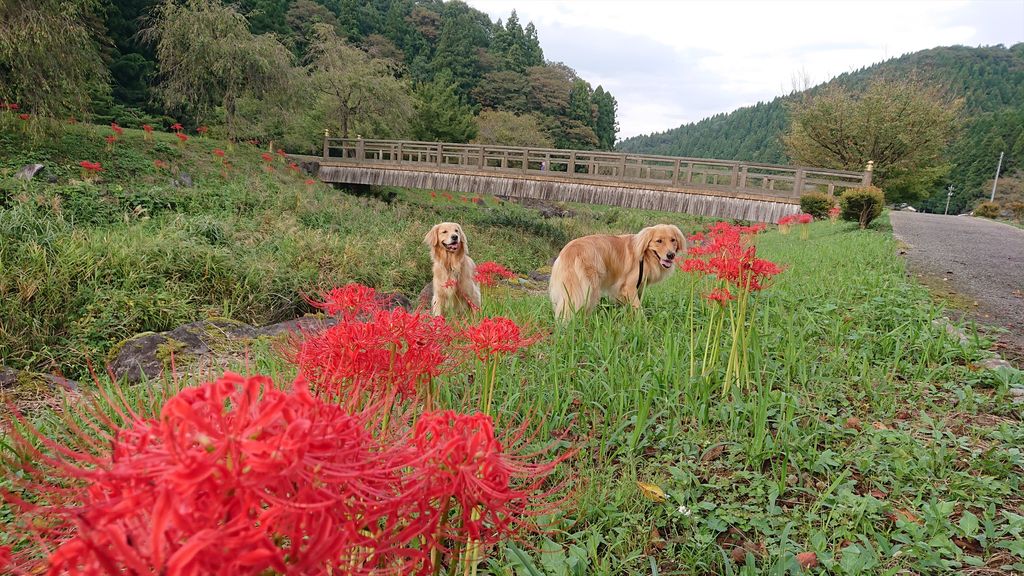 そういえばいつもの散歩コースに彼岸花が満開ですねー