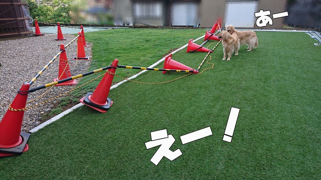 裏庭でワンワン!ガウガウ!
