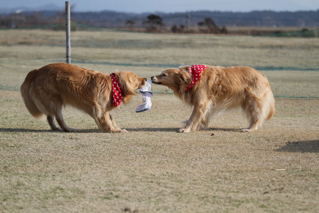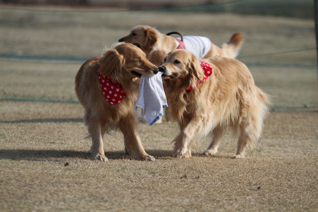 広い場所に来たのに隅っこでタオルの取り合いのすずうたさんたち